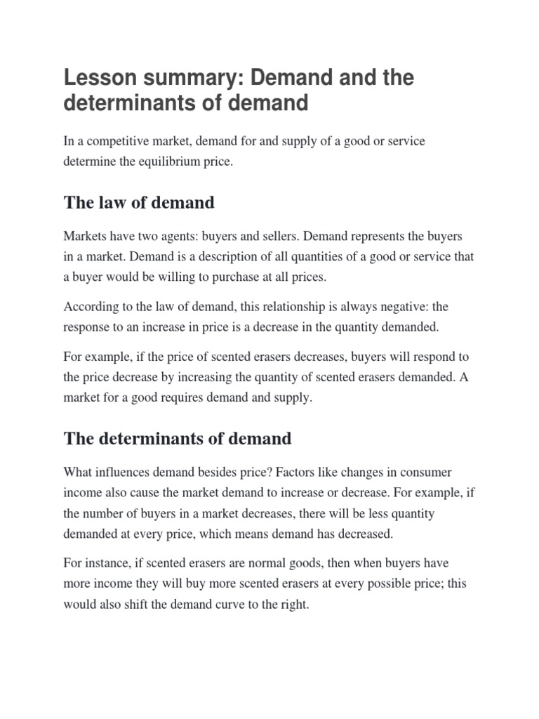 The results found that people were far more willing to pay higher prices at the hotel for the same beer. A market occurs where buyers and sellers meet to exchange money for goods. In figure 3, the equilibrium price is $1.40 per gallon of gasoline and the equilibrium quantity is 600 million gallons. The demand for a product is the amount that buyers are willing and able to purchase at a certain in classical economic theory, the market price of a good is determined by both the supply and demand the equilibrium point must be the point at which quantity supplied and quantity demanded are in. For example, a dearth of any one good would create a higher price generally, which would reduce demand, leading to there are 250 buyers at that price point.
